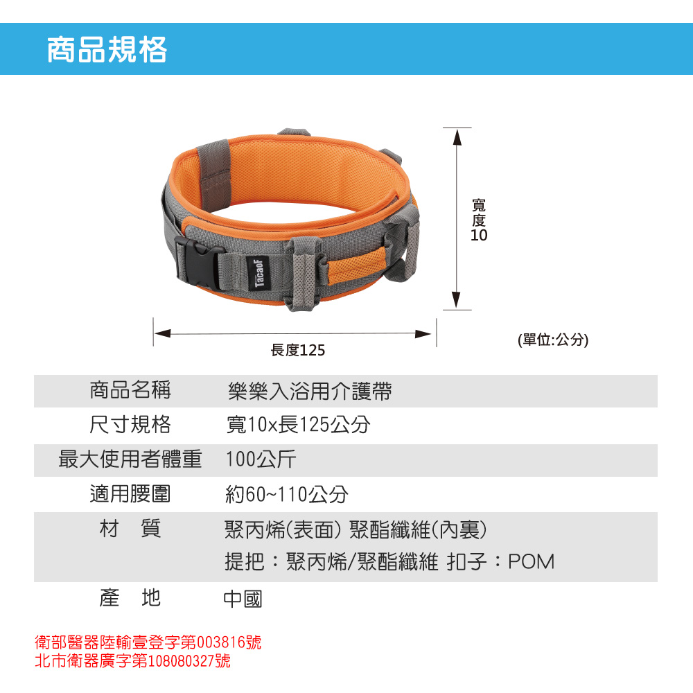 樂樂入浴介護用移位腰帶 KAB21